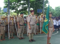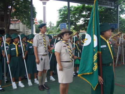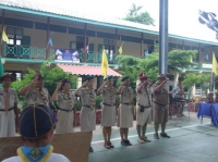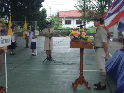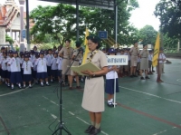 ผู้กำกับ รองผู้กำกับ กองลูกเสือ เนตรนารี โรงเรียนวัดเสาธงกลาง เดินสวนสนามเนื่องในวันสถาปนาลูกเสือแห่งชาติ ซึ่งรัชกาลที่ 6 ได้ทรงสถาปนากิจ การลูกเสือไทยขี้นเมื่อวันที่ 1 กรกฎาคม พ.ศ. 2454 จึงได้ยึดถือวัน ที่ 1 กรกฎาคม ของทุกปี วันคล้ายวันสถาปนาคณะลูกเสือแห่งชาติ ซึ่งได้จัดให้มีการเดินสวนสนามของกองลูกเสือ เป็นประจำทุกปี เพื่อแสดงความเคารพและกล่าวทบทวนคำปฏิญาณ เพื่อประกาศ ความเป็นลูกเสืออย่างแท้จริง |