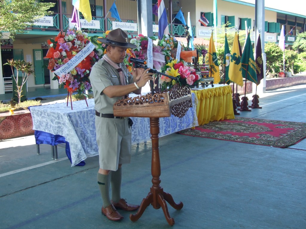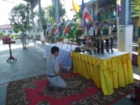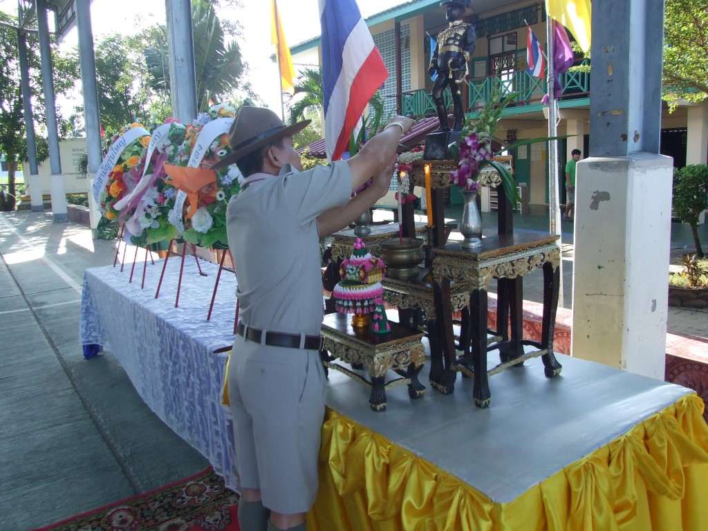 คณะครู และนักเรียนโรงเรียนวัดเสาธงกลาง นำโดยท่านผู้อำนวยการโรงเรียนวัดเสาธงกลาง นายชำนาญ โพธิ์เอม ประธานในพิธีนำคณะครูและนักเรียน ถวายราชสดุดี เนื่องในวัน สมเด็จพระมหาธีรราชเจ้า |
