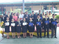 นายวิชฤทธิ์ เพ็ชรเมือง รอง ผอ.สพป.สป.2 นายสุรเดช ธัญรดาวงศ์ ผู้อำนวยการกลุ่มนิเทศ และนางสาวนวลฉวี คนเที่ยง ศึกษานิเทศน์กลุ่มงานวัดผลการศึกษา ให้เกียรติมอบเกียรติบัตรให้กับคณะครูและนักเรียน โรงเรียนวัดเสาธงกลางที่เข้าร่วมการแข่งขันงานศิลปหัตกรรม ปีการศึกษา 2558 |