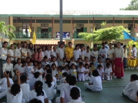 โรงเรียนวัดเสาธงกลาง โดยนายชำนาญ โพธิ์เอม ผู้อำนวยการโรงเรียนวัดเสาธงกลาง ผู้บริหาร คณะครู และนักเรียน ร่วมกับ อบต. อนามัยบางเสาธง ศูนย์อนุบาลเด็กเล็กบางเสาธง และบริษัท ซี.พี.เอฟ ประเทศไทย จำกัด (มหาชน) จัดกิจกรรมแห่เทียนเข้าพรรษา เนื่องในเทศกาลวันอาสาฬหบูชาและวันเข้าพรรษาประจำปี 2559 ณ วัดเสาธงกลาง เพื่อให้นักเรียนได้สืบสานวัฒนธรรมไทย การแห่เทียนเข้าพรรษา ฟังพระธรรมเทศนา เเละร่วมกันทำบุญถวายปัจจัยเพื่อเป็นการทำนุบำรุงวัดเสาธงกลาง |