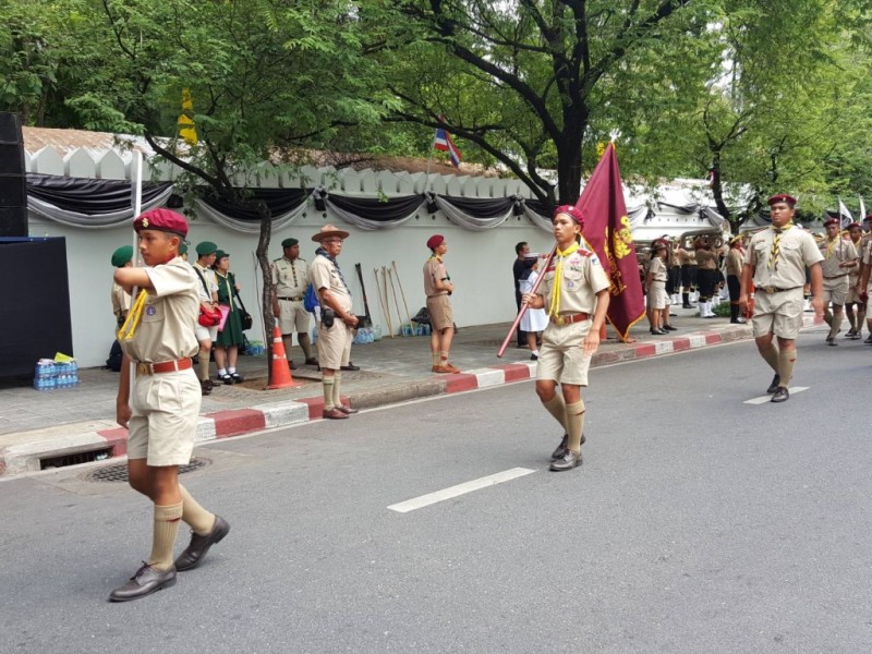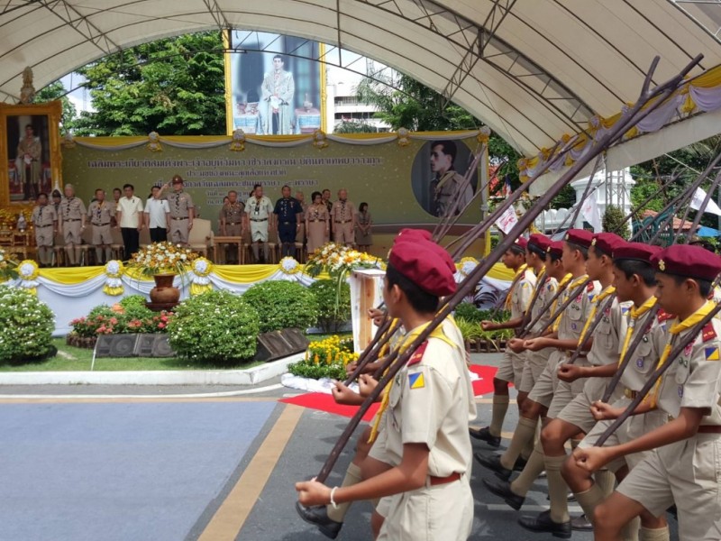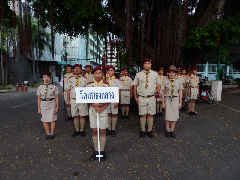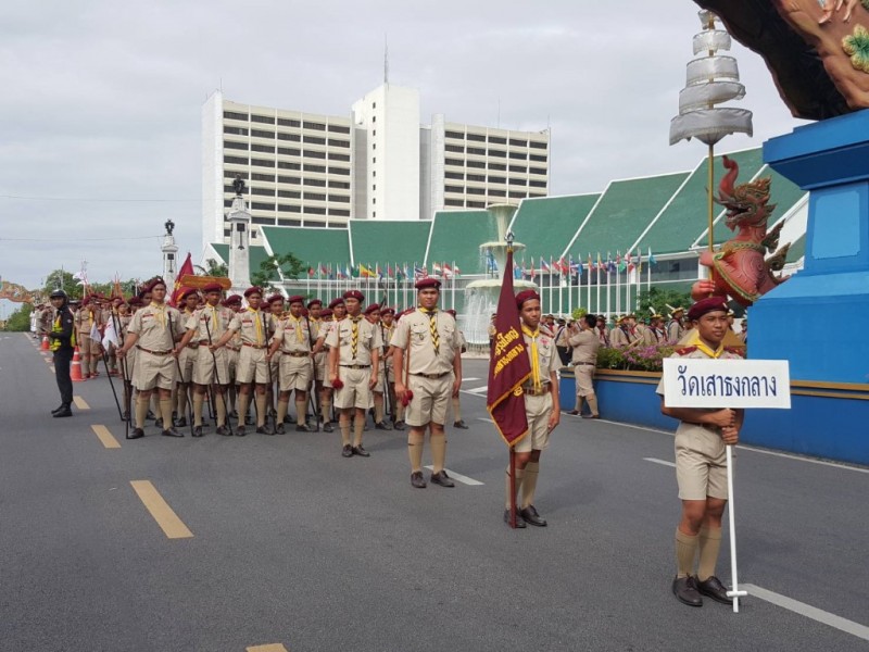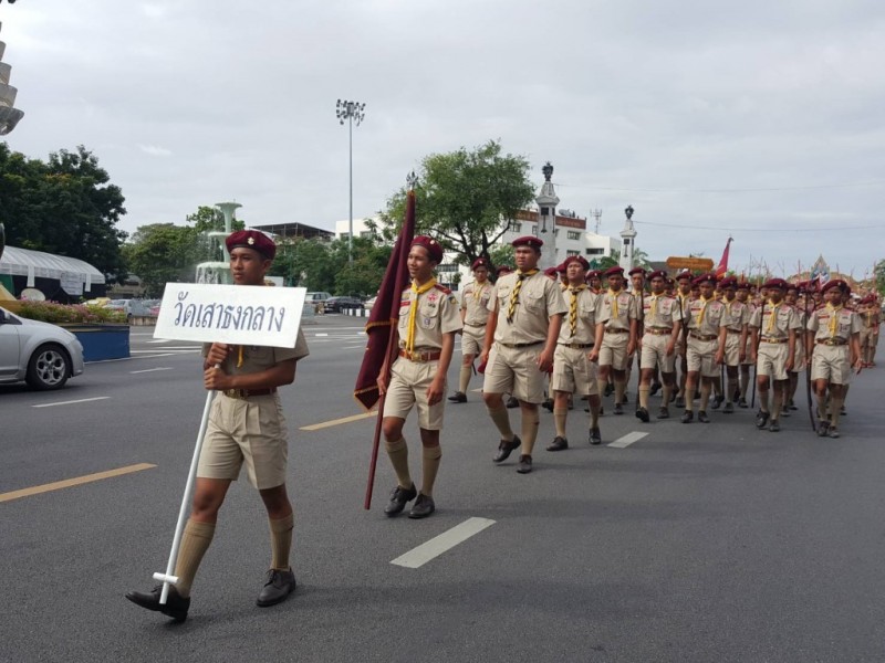ลูกเสือสามัญรุ่นใหญ่โรงเรียนวัดเสาธงกลางเดินสวนสนามหน้ากระทรวงศึกษาธิการ ในงานเฉลิมพระเกียรติสมเด็จพระเจ้าอยู่หัวมหาวชิราลงกรณ บดินทรเทพยวรางกูร เนื่องในโอกาสวันเฉลิมพระชนมพรรษา 65 พรรษา ในวันศุกร์ที่ 28 กรกฎาคม 2560 |