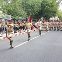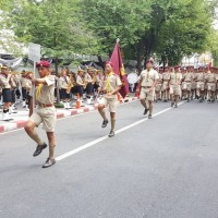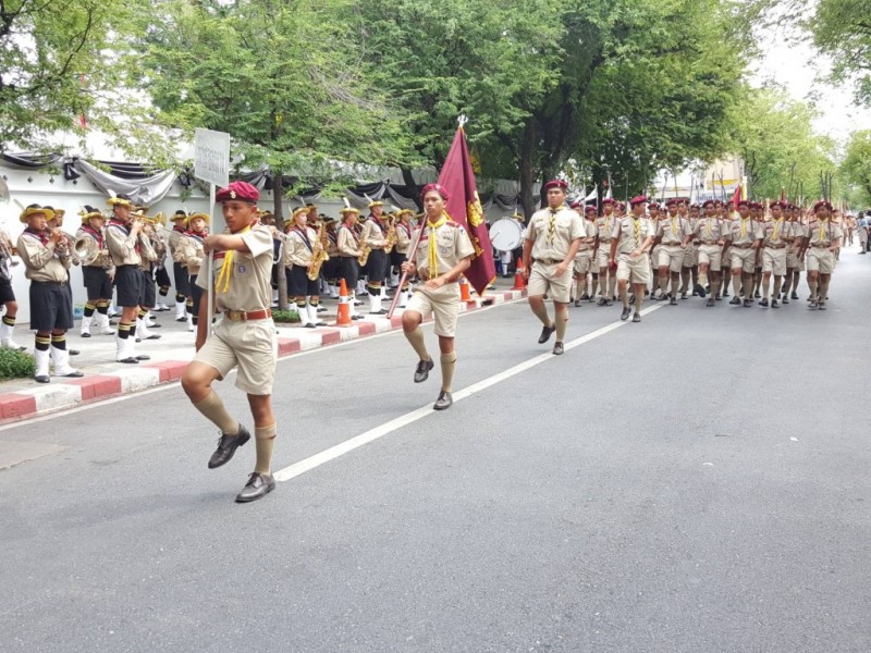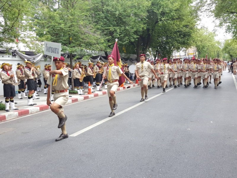 ลูกเสือสามัญรุ่นใหญ่โรงเรียนวัดเสาธงกลางเดินสวนสนามหน้ากระทรวงศึกษาธิการ