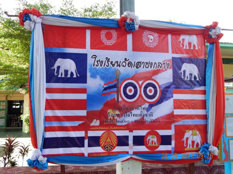 ด้วยคณะรัฐมนตรีมีมติเห็นชอบให้วันที่ 28 กันยายนของทุกปี เป็นวันพระราชทานธงชาติไทย และเป็นการน้อมรำลึกที่พระบาทสมเด็จพระมงกุฎเกล้าเจ้าอยู่หัว รัชกาลที่ 6 ทรงพระราชทานธงไตรรงค์เป็นธงชาติไทย เมื่อวันที่ 28 กันยายน ปีพุทธศักราช 2460 กลุ่มสาระการเรียนรู้สังคมศึกษา ศาสนา และวัฒนธรรม โรงเรียนวัดเสาธงกลางได้เห็นถึงความสำคัญ จึงจัดกิจกรรม งานฉลองครบรอบ 100 ปี การประกาศใช้ธงไตรรงค์เป็นธงชาติไทย โดยมีวัตถุประสงค์ในการจัดงาน คือ เพื่อให้นักเรียนได้รับรู้ประวัติความเป็นมาของธงชาติไทย เกิดความรู้สึกรัก และภาคภูมิใจในชาติไทยผ่านกิจกรรมต่างๆ ที่สอดแทรกในวิชาสังคมศึกษาในทุกระดับชั้น อีกทั้งยังสามารถปฏิบัติตนต่อสัญลักษณ์สำคัญของชาติไทยได้ถูกต้อง |