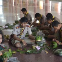 นายชำนาญ โพธิ์เอม ผู้อำนวยการโรงเรียนวัดเสาธงกลาง คณะครูและนักเรียนโรงเรียนวัดเสาธงกลางร่วมกันจัดทำกระทงจากวัสดุธรรมชาติ เพื่อร่วมทำบุญกับวัดเสาธงกลาง จำนวน 400 ใบ ในการนี้ท่านผู้อำนวยการยังนำทีมคณะครูโรงเรียนวัดเสาธงกลางไปช่วยวัดจำหน่ายกระทงเพื่อหารายได้เข้าวัดอีกด้วย