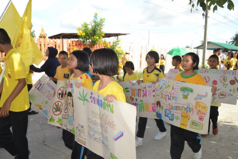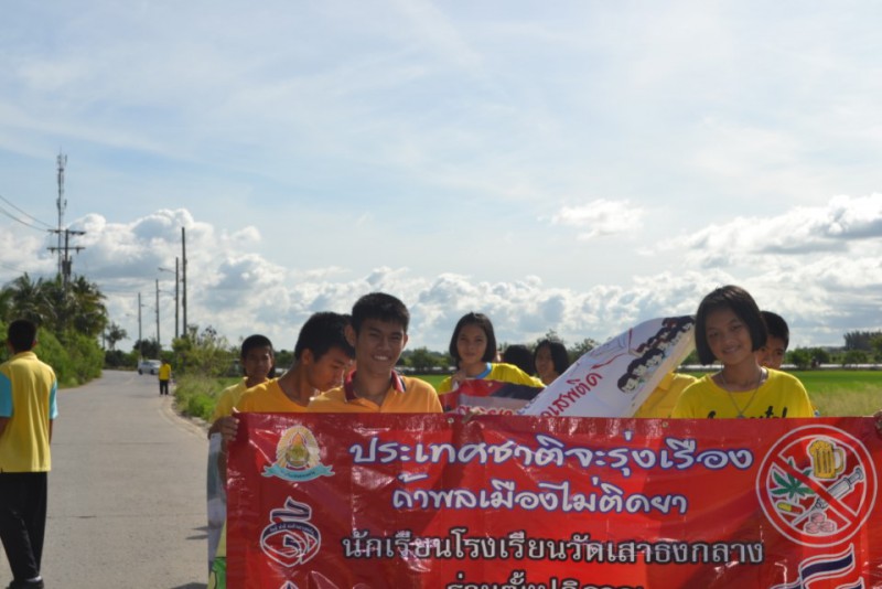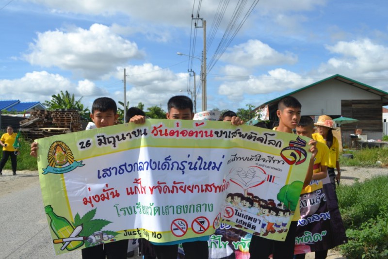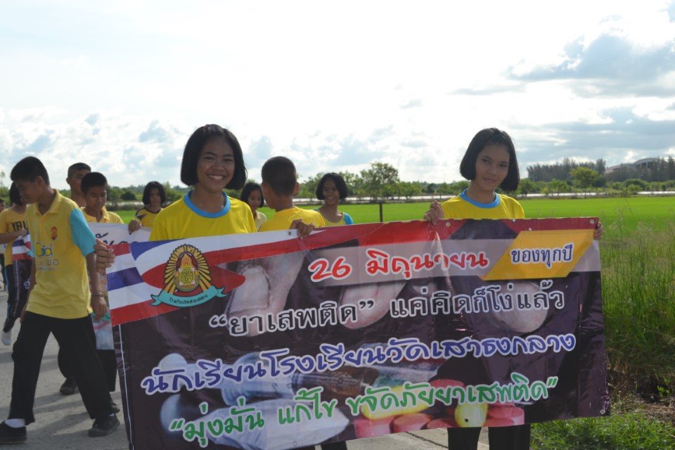 คณะครู และนักเรียนโรงเรียนวัดเสาธงกลาง ร่วมเดินรณรงค์วันต่อต้านยาเสพติดโลก