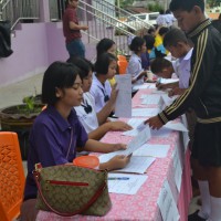 นักเรียนโรงเรียนวัดเสาธงกลางเข้าร่วมกันแข่งขันกิจกรรมต่าง ๆ ในงานศิลปหัตถกรรม ครั้งที่ 69