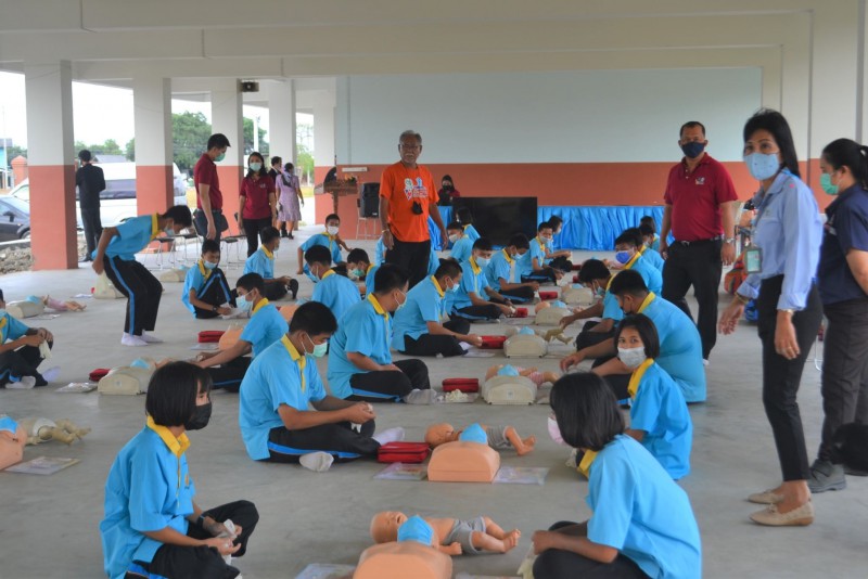 การเอาสิ่งแปลกปลอมที่อุดกลั้นออกจากทางเดินหายใจ ซึ่งนักเรียนให้ความร่วมมือและได้รับความรู้เป็นอย่างดี ทางโรงเรียนขอขอบคุณ บริษัท ซีพีเอฟ (ประเทศไทย) จำกัด (มหาชน) ที่จัดกิจกรรมที่มีประโยชน์ในครั้งนี้ |