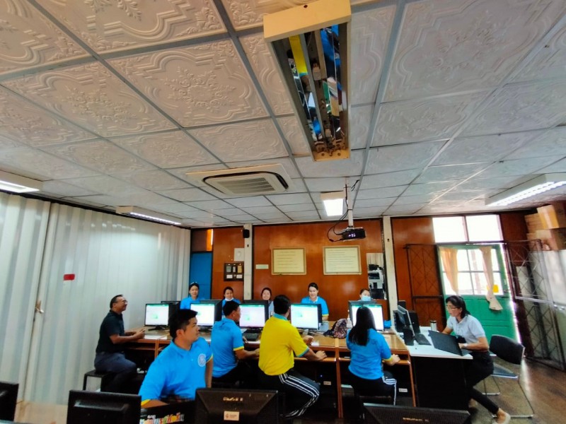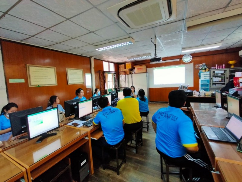 คณะผ้บริหาร คณะครูและบุคลากรโรงเรียนวัดเสาธงกลางอบรมการใช้งานโปรแกรม คำนวณภาวะโภชนาการ