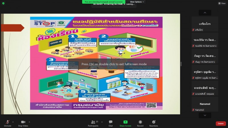 การอบรมโครงการอบรมเชิงปฏิบัติการออนไลน์การเตรียม ความพร้อมมาตรการความปลอดภัยของสถานศึกษา ในสถานการณ์โรคระบาด COVID-19