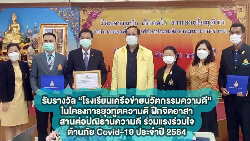 รับรางวัล “โรงเรียนเครือข่ายนวัตกรรมความดี”ในโครงการยุวทูตความดี ฯ ประจำปี 2564