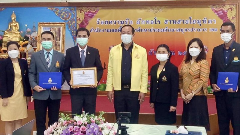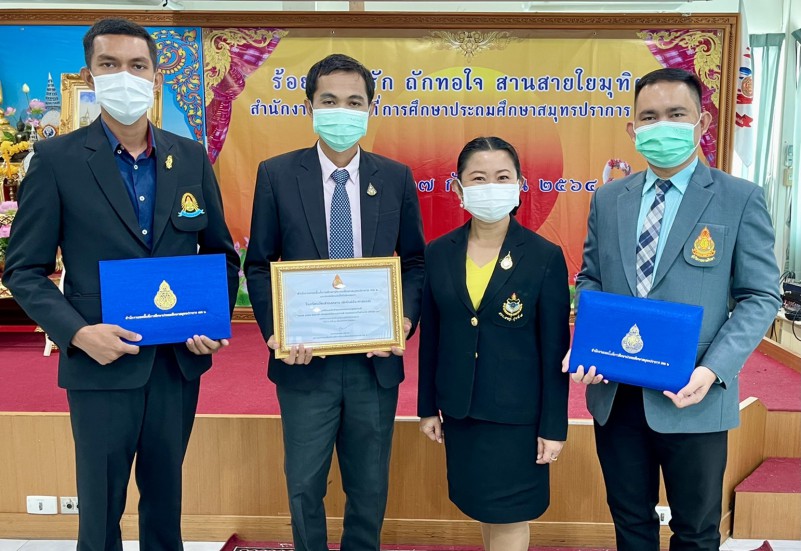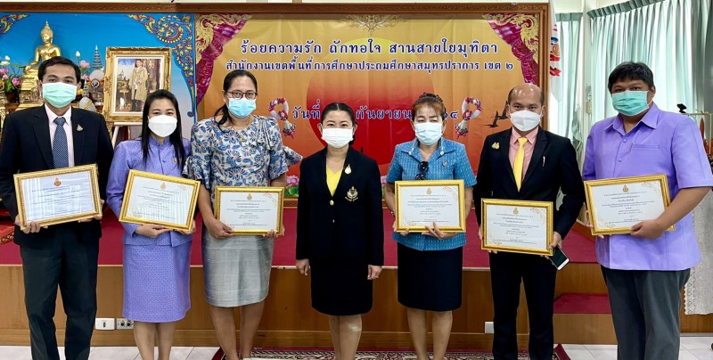 วันพฤหัสบดีที่ 23 กันยายน พ.ศ. 2564 นายวรรณชัย บุสนาม ผู้อำนวยการสำนักงานเขตพื้นที่การศึกษาประถมศึกษาสมุทรปราการเขต 2 มอบรางวัล “โรงเรียนเครือข่ายนวัตกรรมความดี”ในโครงการยุวทูตความดี ฝึกจิตอาสา สานต่อปณิธานความดี ร่วมแรงร่วมใจ ต้านภัย Covid-19 ประจำปี 2564 ให้แก่ โรงเรียนวัดเสาธงกลาง (พิทักษ์ประชาสรรค์) โดยมีนายกิตติศักดิ์ ปัจจวงษ์ ผู้อำนวยการโรงเรียนวัดเสาธงกลาง (พิทักษ์ประชาสรรค์) นายสุรศักดิ์ ทองแท้ รองผู้อำนวยการโรงเรียนวัดเสาธงกลาง (พิทักษ์ประชาสรรค์) เข้ารับรางวัล ณ ห้องประชุมสำนักงานเขตพื้นที่การศึกษาประถมศึกษาสมุทรปราการเขต 2 |